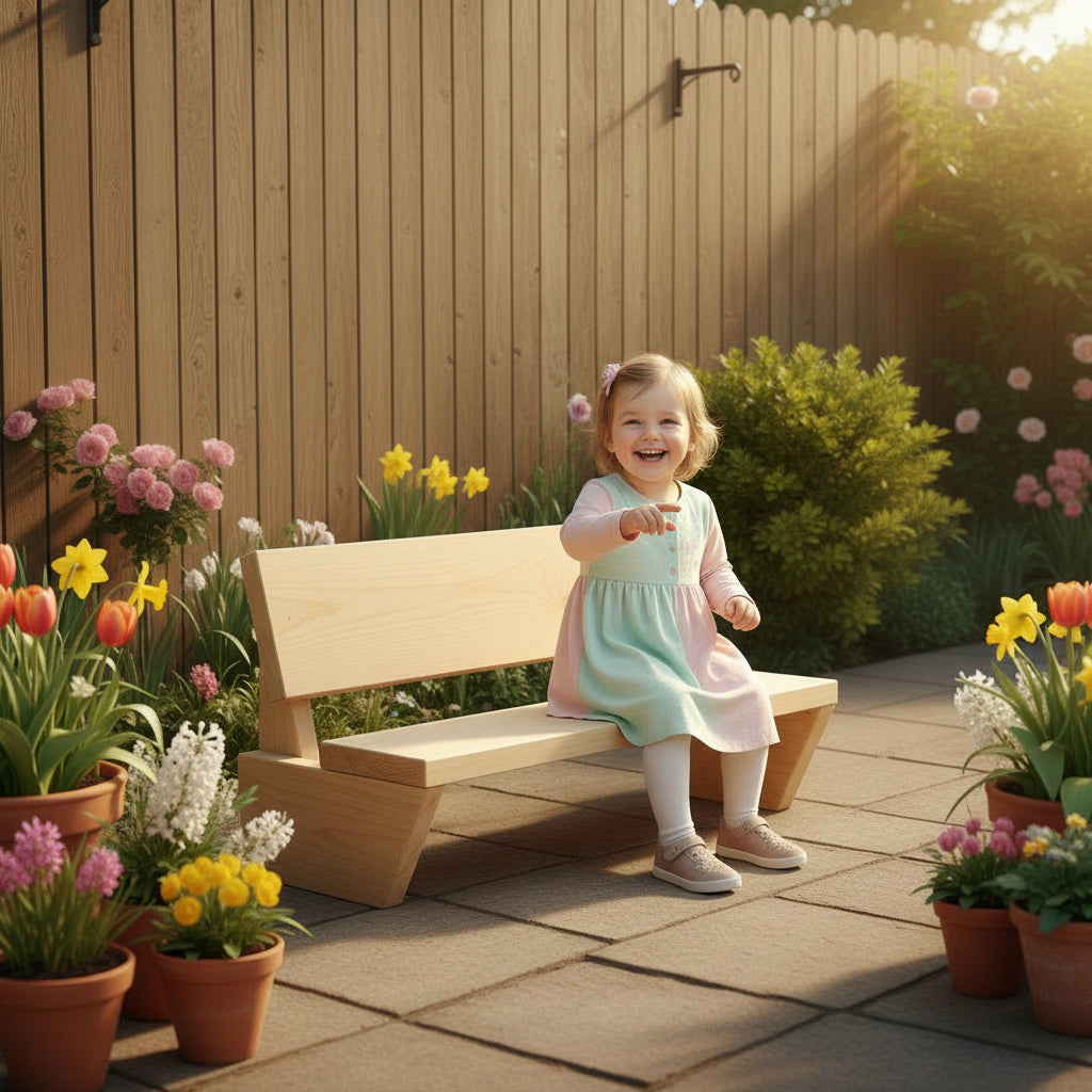 Die Bank ist für Kinder ergonomisch gestaltet, sodass Kinder bequem darauf Platz nehmen können. Durch das schlichte Design passt sie sich mühelos an jede Umgebung an.