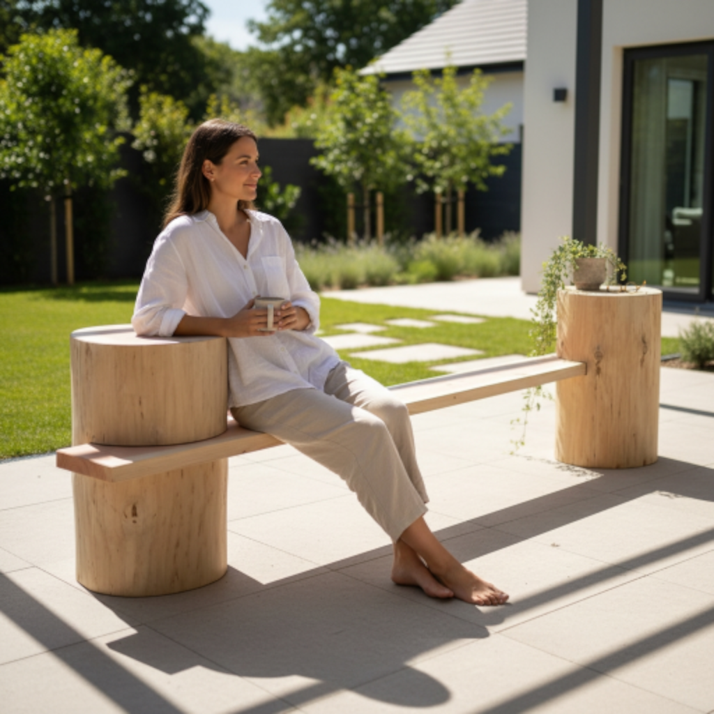 Ob als Ruheplatz für Morgenkaffee auf der Terrasse, als stilvolle Sitzbank im Garten oder als Blickfang im Eingangsbereich — die Twin Log Bank passt sich harmonisch dem Umfeld an. Ihr minimalistisches, zugleich rustikales Design macht sie zu einem perfekten Mittelpunkt für gesellige Stunden oder stille Momente unter freiem Himmel.